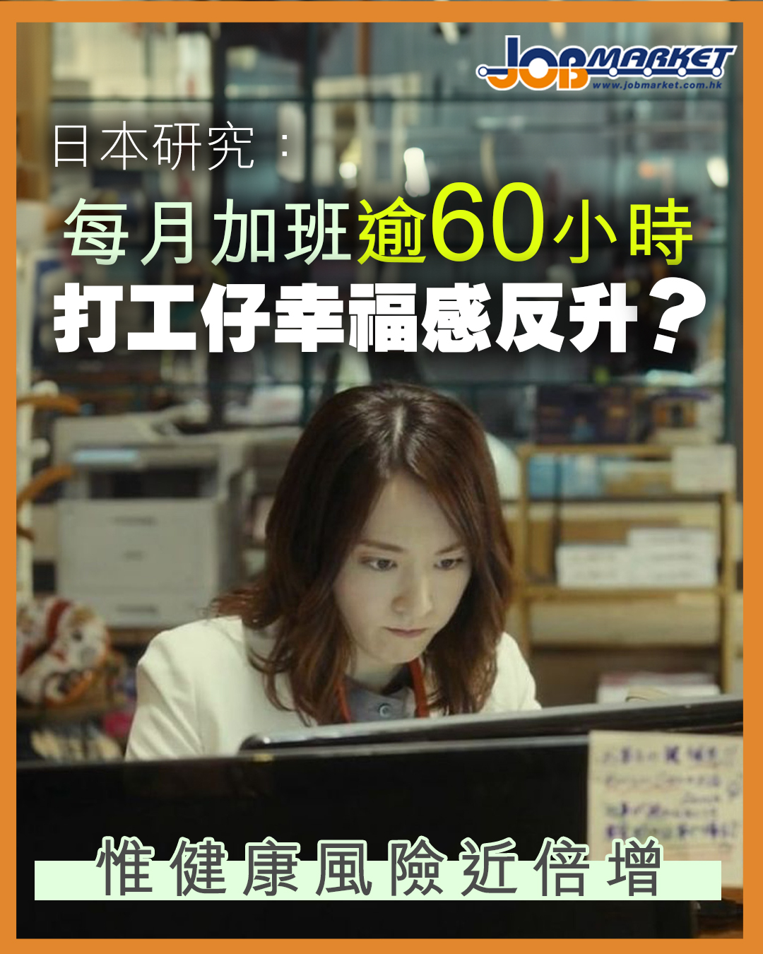 日本職場長工時問題再引關注。有研究發現,每月加班超過60小時的員工,雖然自評幸福感有所提升,但同時面臨更高健康風險,反映過度工作或令人對身體狀況「失去警覺」。