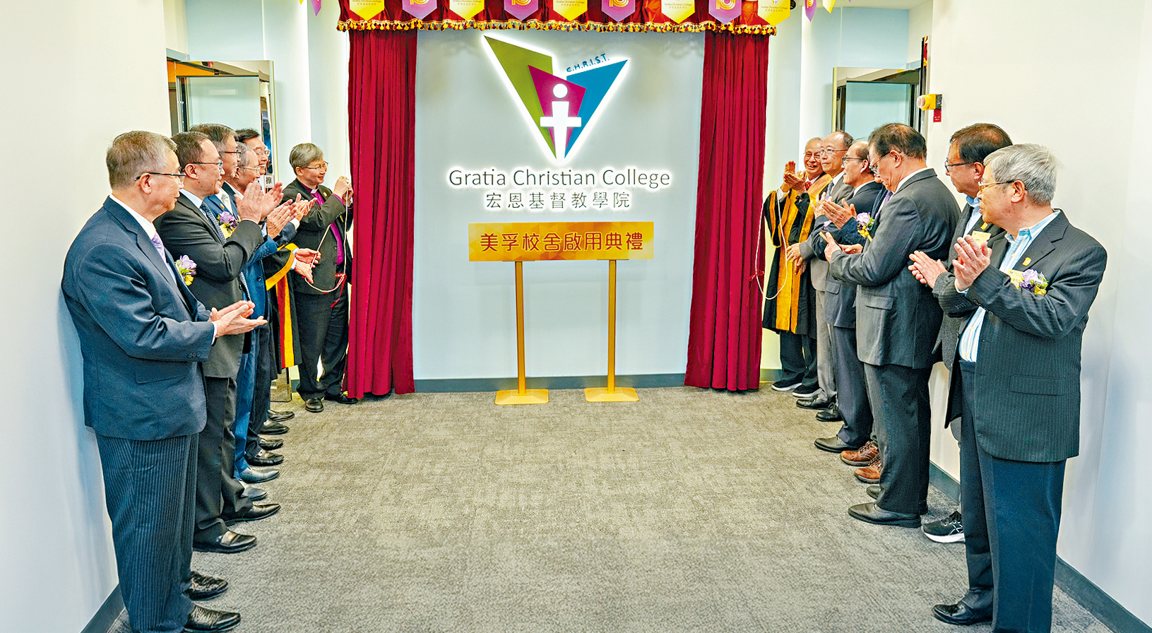 ● 主禮嘉賓陳謳明大主教與宏恩基督教學院創校校董會主席原樹華先生在一眾嘉賓陪同下主持美孚新校舍啟用禮及揭幕儀式。