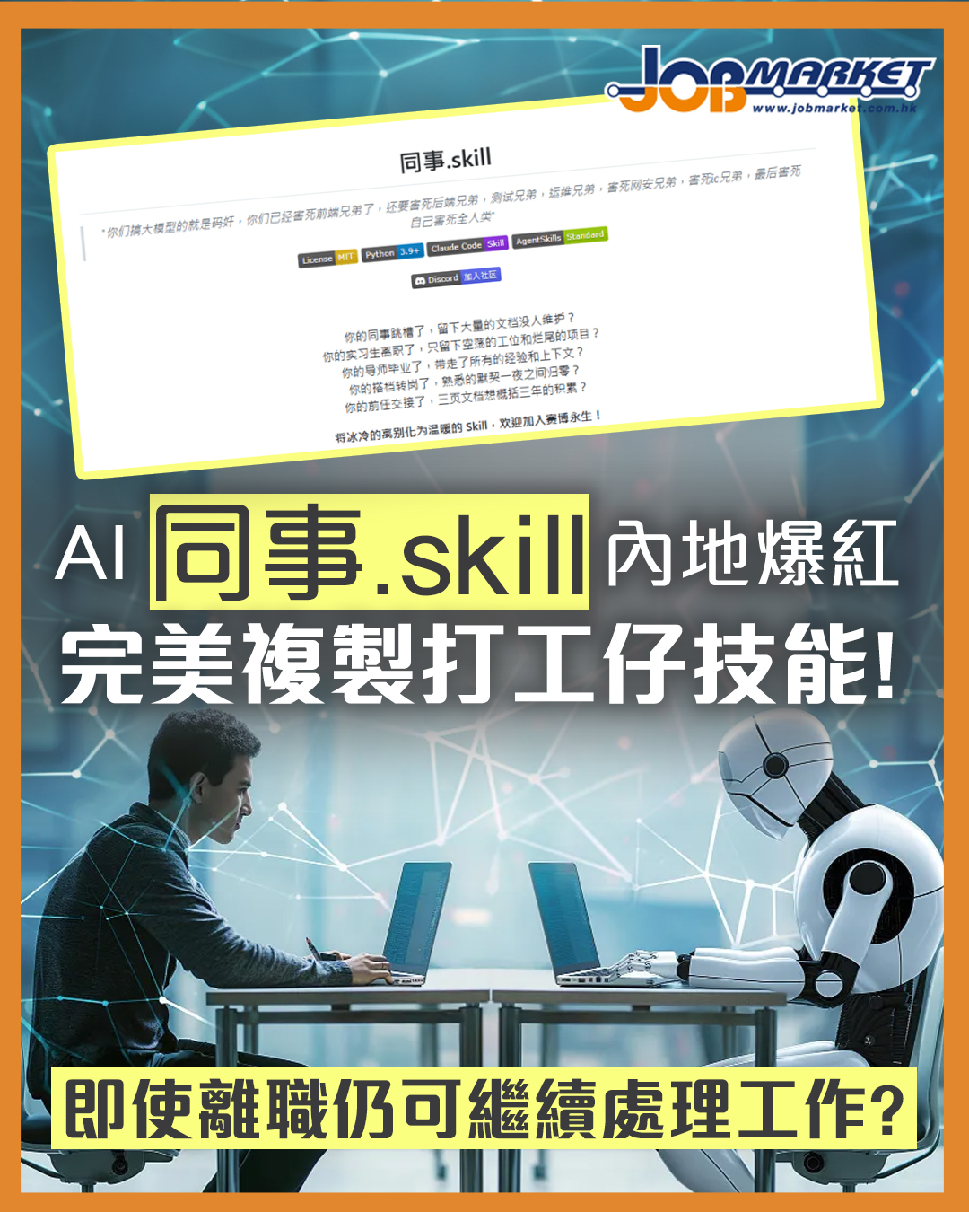 內地人工智能(AI)應用再掀話題。近日一個名為「同事.skill」的開源項目在網上爆紅,聲稱可將同事的工作經驗「複製」成AI技能模組,即使員工離職,其「數字分身」仍可繼續工作,引發大批網民關注,亦掀起職場焦慮及倫理爭議。