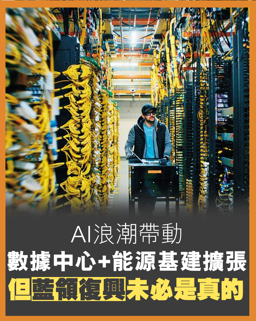 根據英國《金融時報》報導,人工智能(AI)熱潮正改變全球產業格局,同時帶動數據中心、能源與基建大舉擴張。政治人物口中的「藍領復興」似乎很吸引,但對於正在搵工的年輕人來說,這股熱潮帶來的機會到底有幾多?現實比想像中複雜得多。