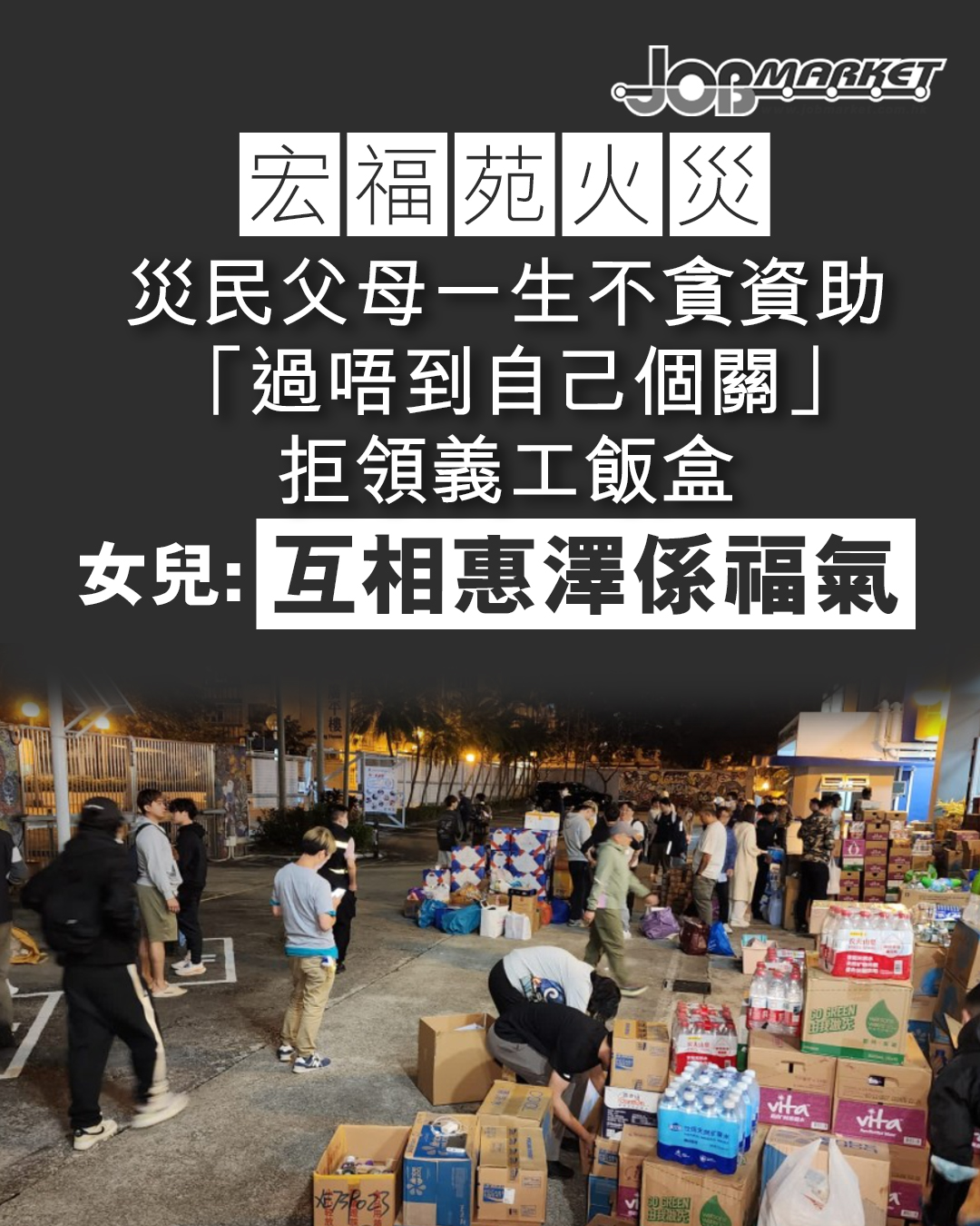 習慣自力更生的人往往不輕易接受他人幫助,然而,一場突如其來的災難,卻讓這些人重新審視「接受幫助」的意義。大埔宏福苑周三(26日)發生五級大火,導致逾千名居民家園盡毀,無家可歸。許多熱心街坊紛紛自發收集應急物資,齊心協助災民,展現了社會守望相助的精神。日前有位女生在社交平台發文,細述為災民父母領物資的經歷,由最初的掙扎到最終接受援助,明白到「互相惠澤都是一種福氣」,引起網民熱烈回應與支持。