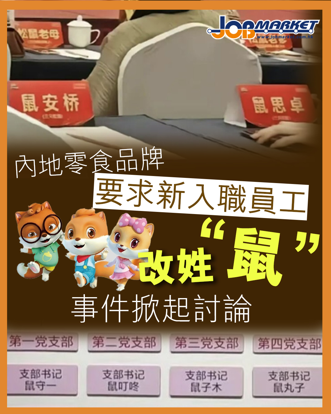 近日有網友發帖稱,在入職休閒內地零食品牌「三隻松鼠」後,員工需將自己的名字改為「鼠某某」,事件引發輿論關注。該品牌方證實此事,稱這是企業內部文化,但並非強制規定。