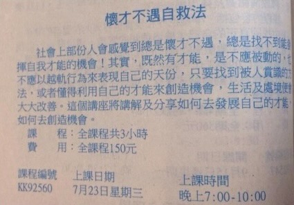 不少機構均有舉辦各類興趣班,以迎合市民自我增值的需求,但近日有網民發現,工聯會開辦的部分課程內容相當「另類」,例如聲稱源自蘇聯的「第七感研習班」及協助學員自我賞識的「懷才不遇自救法」。這些與別不同的課程旋即在網上引起熱烈討論,令不少網民對其內容及成效感到好奇。