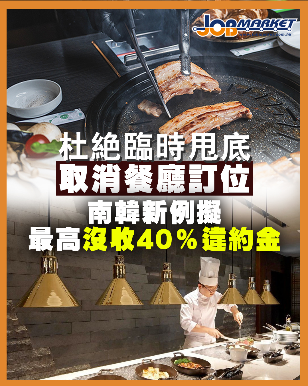 南韓政府正規劃修改規例,嚴懲臨時取消訂位的客人,尤其是需要預先準備食材的私房菜以及高級餐廳,預計將收取的違約金從10%提升至40%。政策最快會在年底實施。