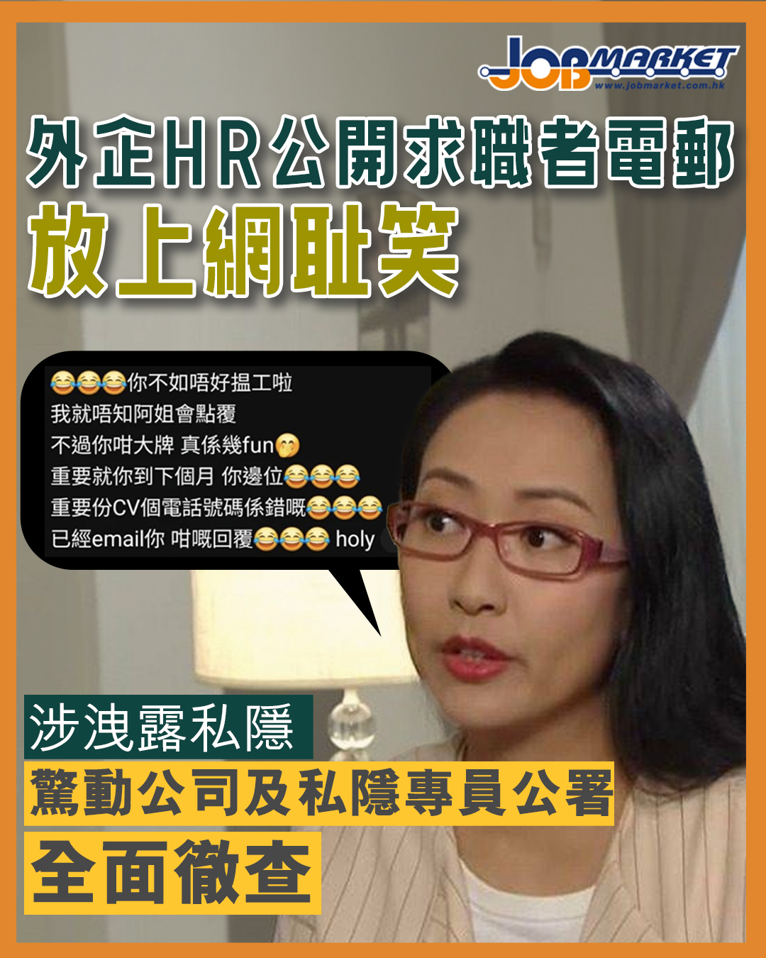 有港知名外企的人事部職員, 21日在社交平台公開一名求職者的電郵截圖,作為嘲笑對象,批評該求職者:「你不如唔好搵工啦」,行為引發網民群起非議及投訴,不少人質疑有洩露私隱之嫌,有關言論亦太尖酸刻薄。