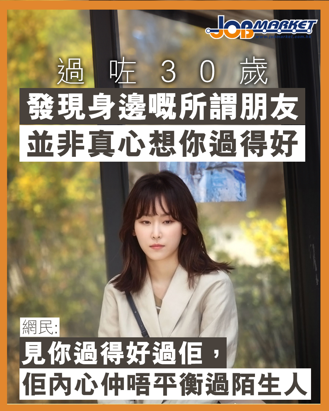踏入三十歲,不少人開始對「友情」有截然不同的體會。近日有90後網民在社交平台發文分享感受,指自己過了30歲後,突然發現身邊的所謂朋友,其實並非真心希望你過得好,反而更似是在一旁「等睇你衰」。他形容:「見你過得好過佢,佢內心仲唔平衡過陌生人。」短短一句說話,隨即引來大量網民留言,掀起關於成人友情、人性與比較文化的熱烈討論。