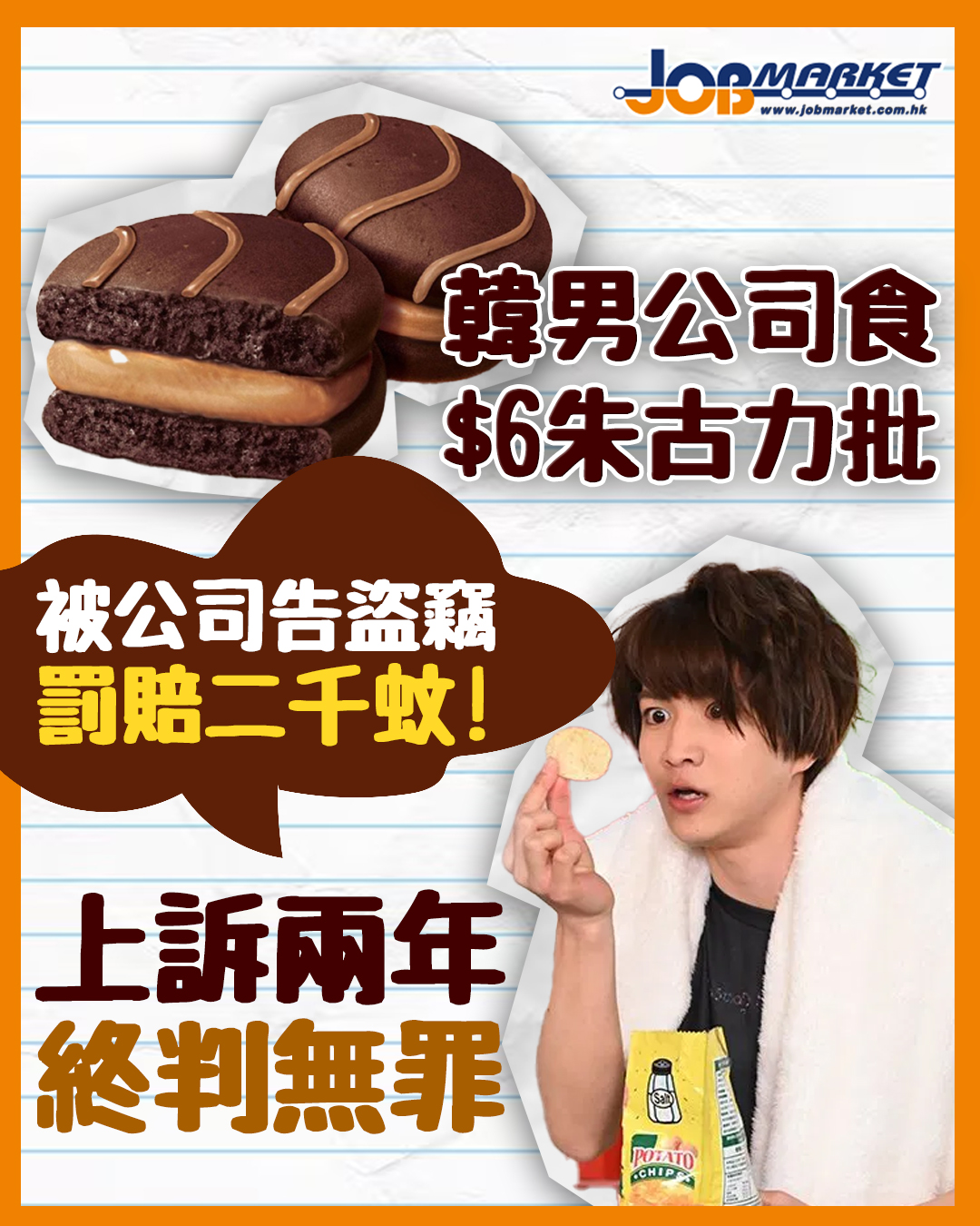 南韓一名男子2024年從公司冰箱拿走總價值約1050韓圜(約5.6港元)的朱古力批及吉士夾心蛋糕,結果被公司控告竊盜,判罰50萬韓圜(約2666港元)。男子事後提出上訴,歷經近2年法律攻防,全州地方法院上訴庭改判無罪。