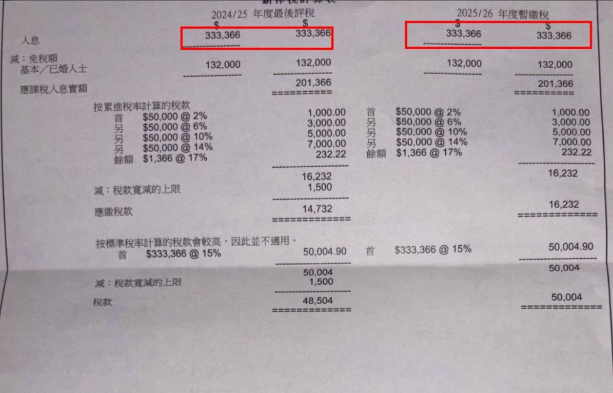 不少學生都會透過兼職賺取額外收入,以應付日常開支或作儲蓄之用。最近,一位17歲學生於社交平台慘呻收到天價稅單,表示自己曾於連鎖快餐店的咖啡店部門任兼職員工,時薪大約$60$70,當他收到報稅表時亦如期報稅。惟事主早前收到薪俸稅的繳納通知書,通知他於2024/25年度應繳稅款為$14,732,加上2025/26年度暫繳稅為$16,232,應繳稅總額為$30,964