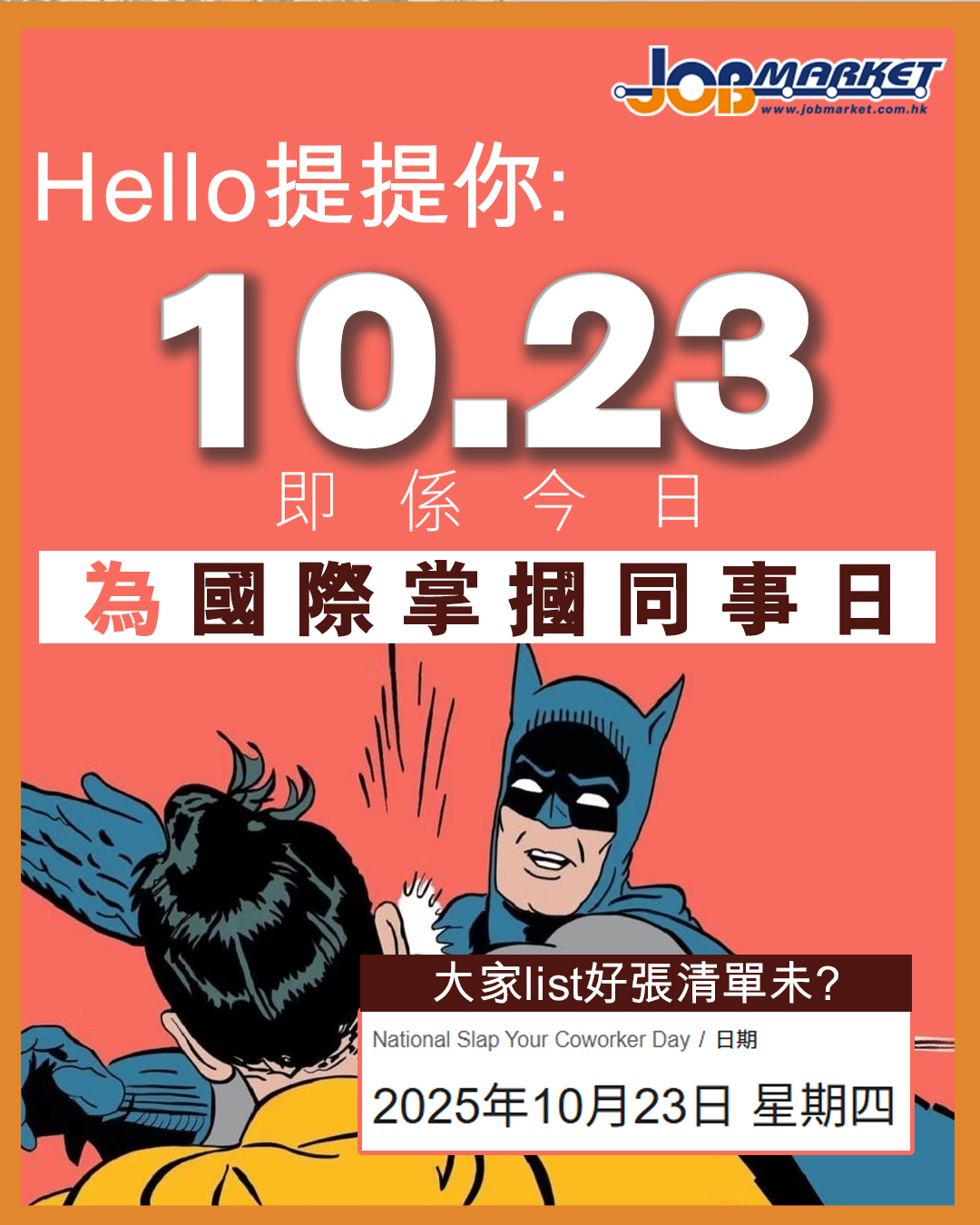 每年 10 月 23 日,是網絡上流傳已久的「國際掌摑同事日(National Slap Your Coworker Day)」。這個聽起來充滿火藥味的節日,自 2000 年代初就在美國網絡文化中默默興起,成為上班族苦中作樂的話題。今年再度引發熱議,不少網民笑言「每天都想慶祝」,亦有人認真思考:這天是否反映了現代職場的壓力與無奈?