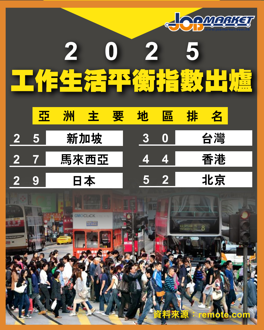 雖然香港在排名上略高於北京,但與區內的台灣、日本及新加坡相比,差距仍然明顯。分析認為,本港勞工普遍面對長工時、假期偏少及工作壓力大等問題,導致「工作生活平衡」得分偏低。