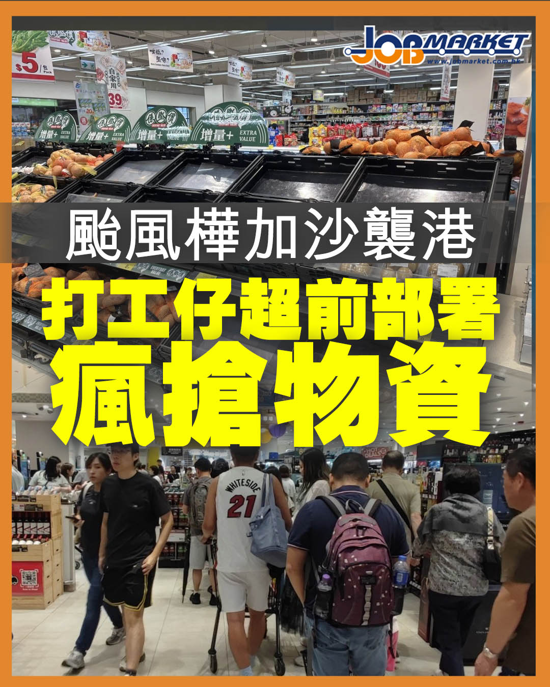 在香港,雖然當局尚未正式宣布大規模防風措施,但市民已經紛紛湧入超市及街市掃貨。有網民表示,自己「行咗三間麵包店先買到幾個麵包」,也有人到街市只買到三包菜,其他食材幾乎被搶光。