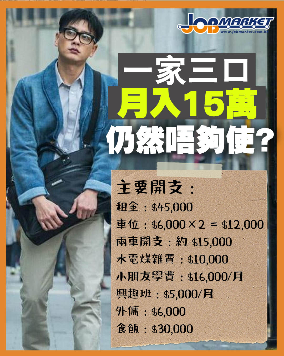 事實上,香港的生活成本長期高企,住屋一直是最沉重的負擔,私人屋苑優質單位租金動輒四萬元以上,而車位供應不足,租金動輒五千到八千元,買入更需數百萬。至於教育,國際學校或私校學費往往每年十五至二十萬元不等,加上興趣班與補習開支,絕對不是小數目。在這樣的背景下,即使家庭月入十五萬,若選擇高消費的生活方式,自然容易感覺「入唔敷出」。