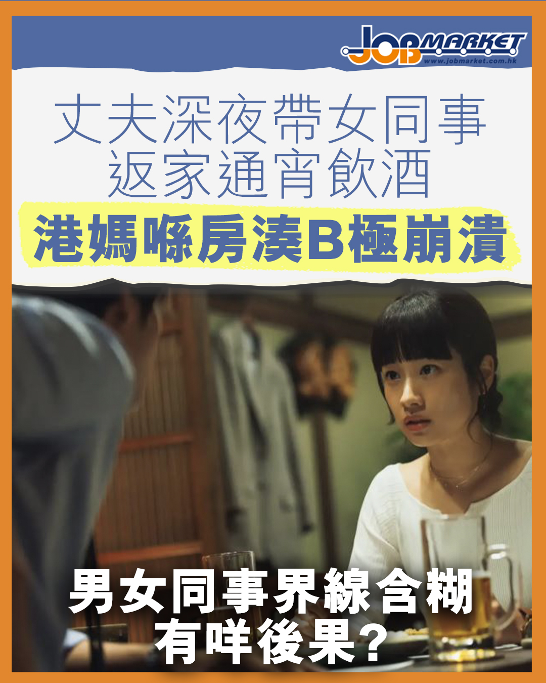 一名港媽於網上投稿,指丈夫在晚上 11 時半帶女同事回家飲酒聊天,直至凌晨近 3 時才散。其間 BB 在房內爆喊,她獨自照顧,但客廳持續傳來兩人的談笑聲。事主表示曾在凌晨 1 時半訊息提醒太嘈,丈夫回覆「就嚟完」,卻仍然傾多近兩小時。