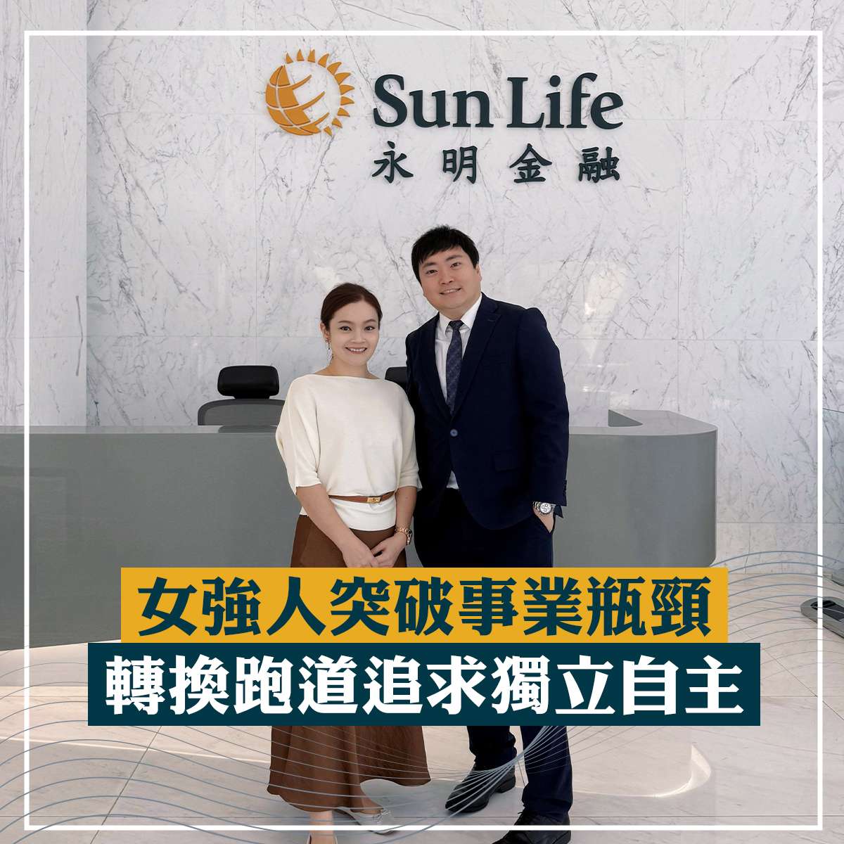 Sabrina表示,在一個行業深耕十年後轉型需要很大的勇氣,但她仍決定跳出舒適圈,「我希望證明自己的能力,無論去到哪裡我都可以做得好!」她認為加入Sun Life永明所帶來的轉型成功及正面轉變,促進其個人成長,使她更樂於接受新事物和新挑戰,如利用社交媒體分享其生活品味,打造個人品牌。Sabrina笑說:「建立團隊是我給自己的新挑戰,現正著手進行招募,我希望尋找具有共同理念的人加入,一起為事業打拼。」