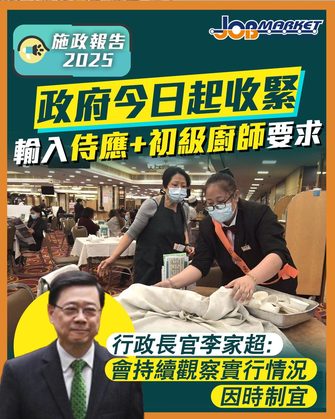 李家超補充,餐飲業部分領域(如快餐及非中式餐飲)正處於擴展階段,確實存在額外人手需求;建造業方面,政府已預留300億元推動基建項目,以創造更多本地職位。