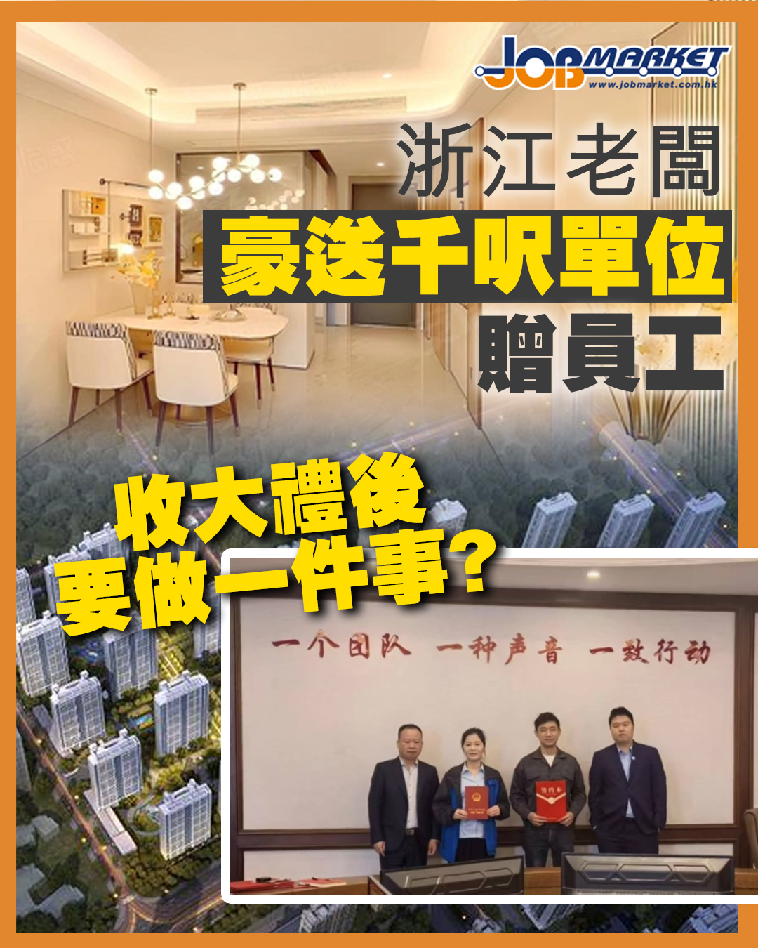 香港打工仔如得到僱主升職加薪,應已非想高興。相信未必有人會想像到,會收取到老闆贈送的樓房。近日,浙江溫州一公司向部分員工送房引發關注。