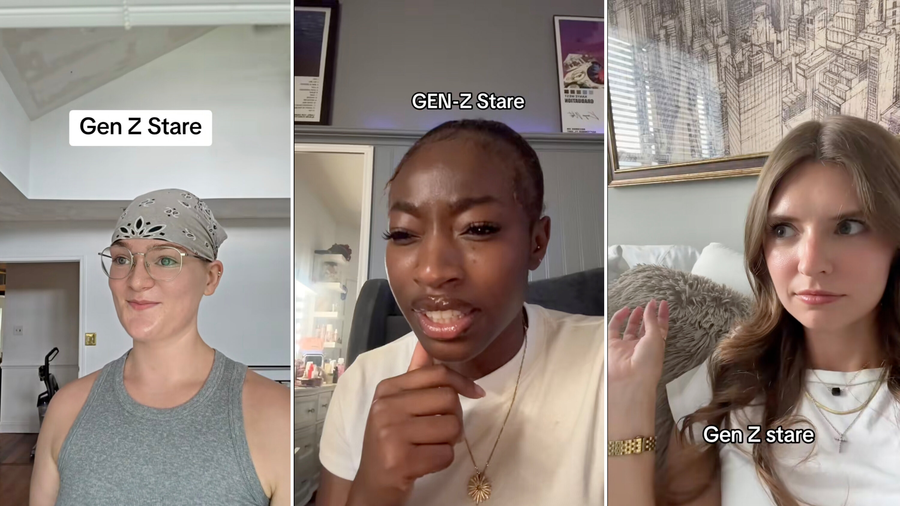 最近在TikTok及小紅書上瘋傳的一種「面癱式凝視」,被稱為「Z世代凝視」(Gen Z Stare)。短片中,年輕人不論在咖啡店、辦公室還是餐廳,臉上幾乎毫無表情,雙眼直直盯著對方,既不像在聆聽,也不像在思考,卻引來網民熱烈討論。
