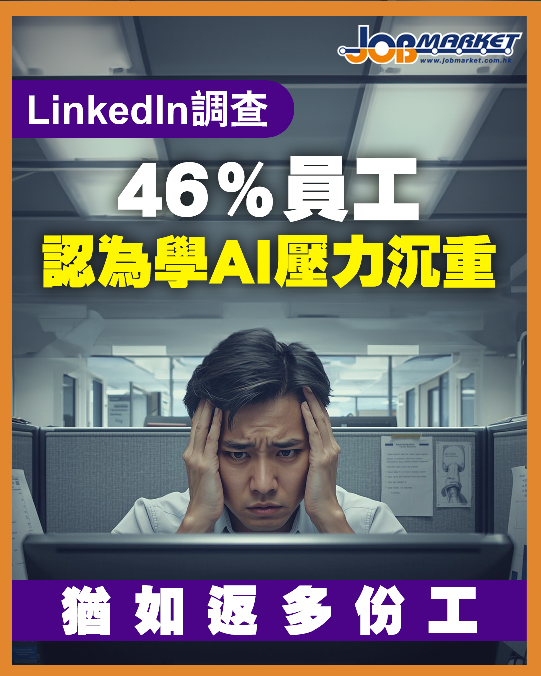 調查顯示,46%的員工認為學習如何運用AI處理工作任務是一種沉重負擔,幾乎等同於「額外兼職」。